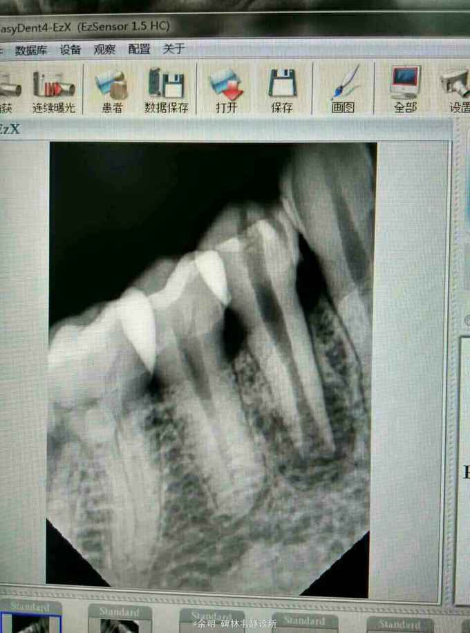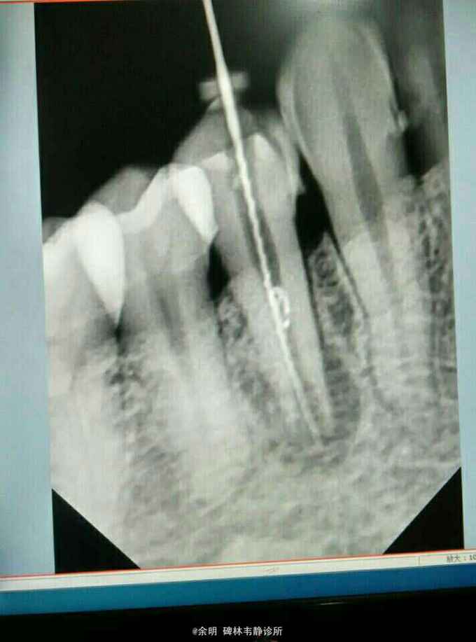 这个病例还未处理完成,拿出来与大家讨论讨论。 1畸形中央尖一般大都有对称性,检查拍片未见34有中央尖 2牙根纵折早期有冷热痛,咀嚼痛(病人的未有这些症状)(附根纵折的资料), 3根内吸收可见牙冠成粉红色,此病人牙冠未变色 我发出来这个病例:想和大家交流交流,望大家多给宝贵意见,留下这颗牙。