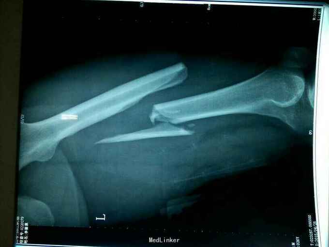 主 诉:车祸致左侧大腿部疼痛、不敢活动4天。 现病史:患者家属诉于2015年12月2车祸致左侧疼痛、不敢活动,伤后意识清,无头疼,头晕,无恶心、呕吐等不适症状,当地120急救车送至当地骨科医院,行左侧大腿正侧位提示:左侧股骨骨皮质连续性中段,断端移位明显,收入院给予左侧下肢长腿石膏外固定,并建议行手术治疗,家属要求转至上级医院诊治,今患者及家属为求进一步诊治来我院就诊,经查以“左股骨干骨折”收入院。患者目前精神尚可,体力正常,食欲正常,睡眠正常,体重无明显变化,排尿正常,大便正常。