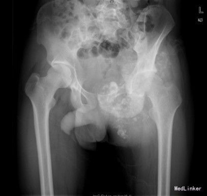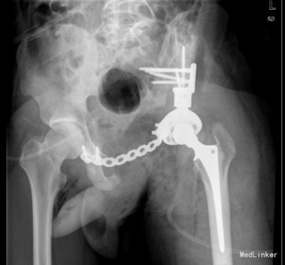 已行左侧骨盆肿瘤切除活检+左半骨盆置换术。由于骨盆区解剖结构复杂,骨盆恶性骨肿瘤的保肢手术极具挑战性。早期文献报导的致死性并发症高达10%,总体并发症更高达75%,5年生存率约为 25%-35%;目前随着技术进步预后相对较好一些。