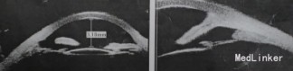 眼部检查:VOD 0.6, VOS:0.4,右眼中央前房2CT,周边1/3CT,虹膜纹理清,瞳孔3×3mm,晶体混浊;左眼眼中央前房3CT,周边1/4CT,虹膜不规则前粘连,IOL在位。眼底 C/D右眼0.5 左眼1.0。 房角镜检查:右眼NⅢ,全开;左眼NⅣ,粘闭>3/4 UBM:右眼激光周边虹膜切除术后,房角狭窄;左眼人工晶状体眼,抗青光眼术后,3/4房角关闭。