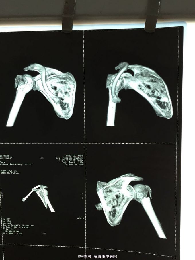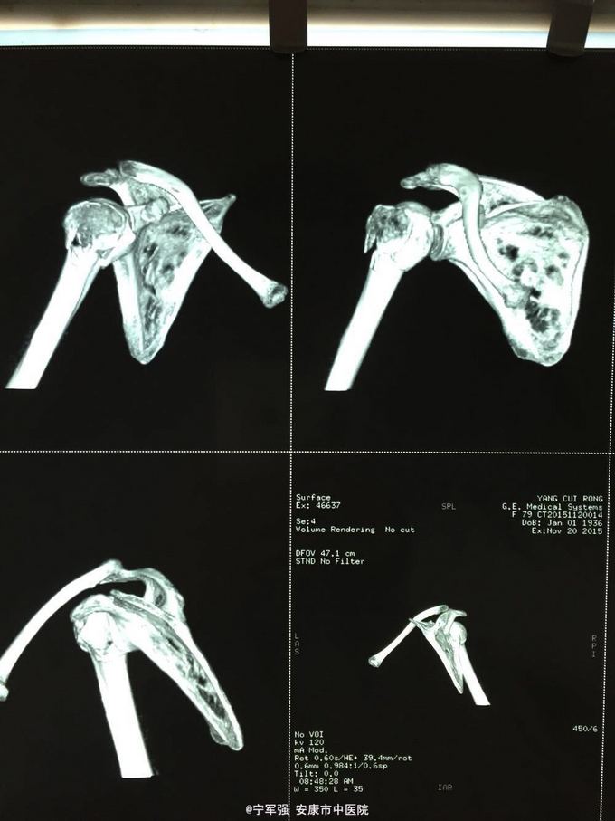 患者,女性,79岁,外伤导致右肩部肿痛不适2小时