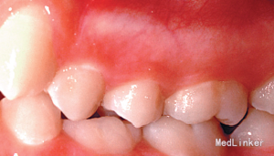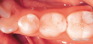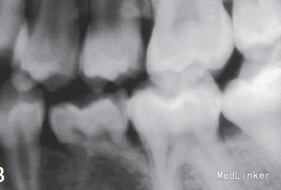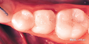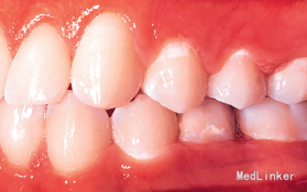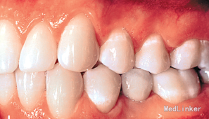 诊断:35牙缺失,牙列不齐 治疗:排齐整平上下牙列,对滞留的乳磨牙处理如下:因乳磨牙宽大,较正常前磨牙近远中径大很多,正畸治疗过程中逐次给乳磨牙减径后树脂修复参与正畸治疗,使减径树脂修复后的乳磨牙宽度为以后修复的前磨牙宽度一致。减径后的间隙留作牙列内其他牙齿的排齐。