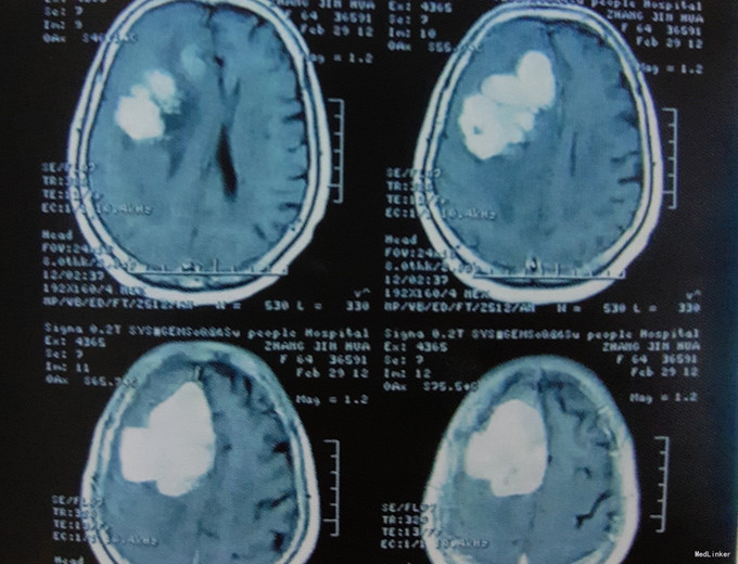 诊断:右额顶中央前回矢状窦旁脑膜瘤 治疗:在全麻下行开颅探查右额顶中央矢状窦旁巨大肿瘤切除术。