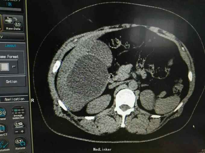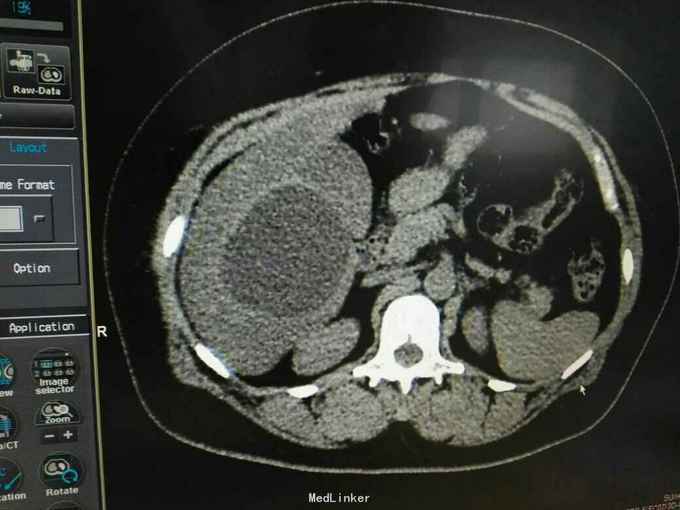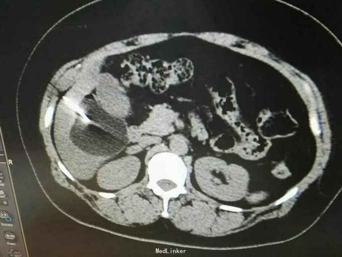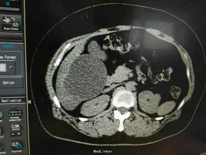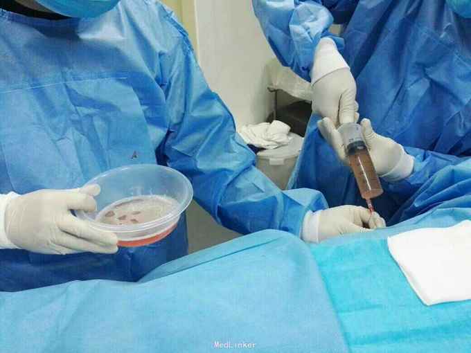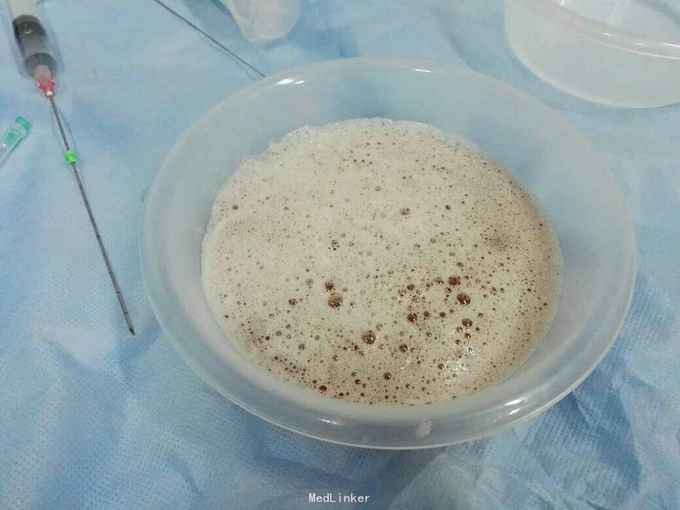 今日在局麻下行囊肿穿刺抽吸+无水酒精注射术 术中共抽取淡黄色液250ml