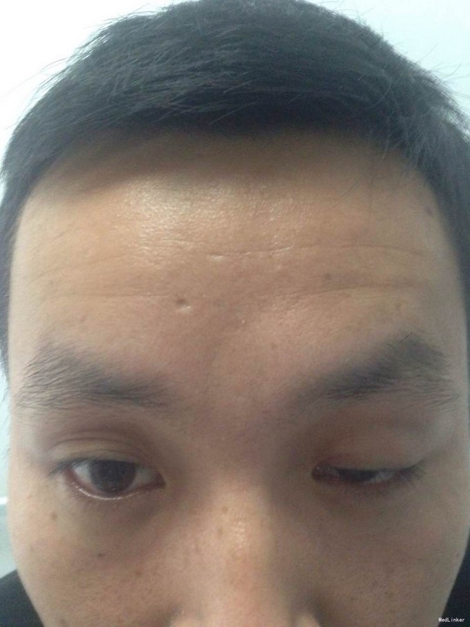 主诉:左眼睑下垂1年,加重半年。病史:患者1年前无明显诱因出现左眼睑下垂,抬起困难,伴视物重影,无言语不能、吞咽困难,无发热、头痛、恶心、呕吐、头晕、视物旋转、肢体麻木、饮水呛咳、视物模糊、肢体不自主运动、肢体抽搐、意识障碍、大小便失禁,休息后缓解,未予重视,半年来上述症状反复加重,10余天前至当地医院就诊,查新斯的明试验阳性,遂至我院神经内科就诊,胸部CT示:1、右肺尖钙化结节;2、胸腺增生。为了进一步治疗门诊拟“重症肌无力”收住我科。患者自起病以来,无发热、咳嗽、尿频、尿急、腹泻,无心悸、胸闷等,精神、食欲、睡眠好,体重无明显变化。