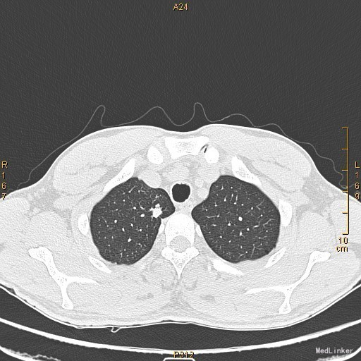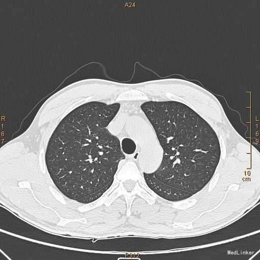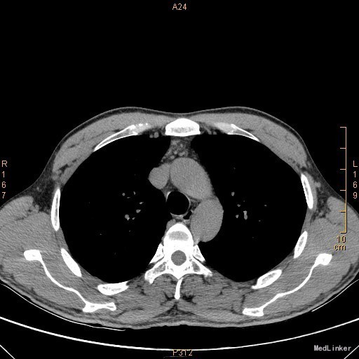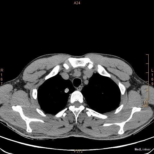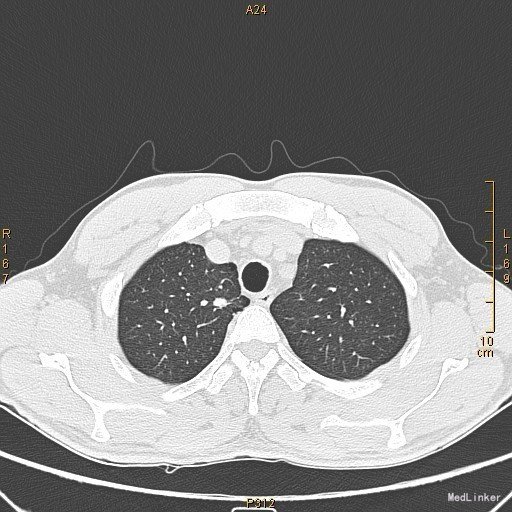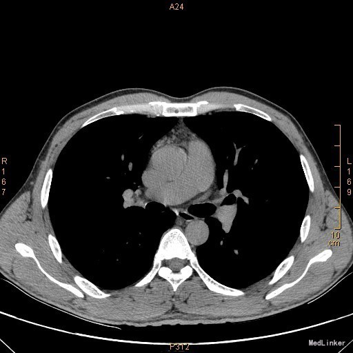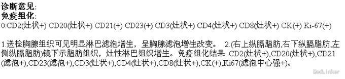 查体:左侧眼睑下垂,右侧眼裂宽10mm,左侧眼裂宽5mm。肺部查体未见异常。 辅查:新斯的明试验阳性。胸部CT示1、右肺尖钙化结节;2、胸腺增生。