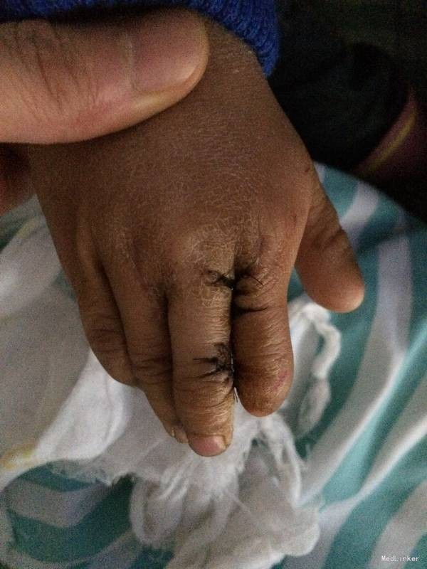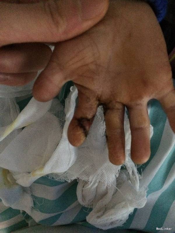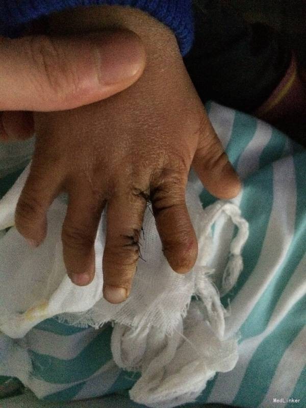 患儿男,5岁,四月前在我院行先天性中环指并指分离术