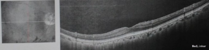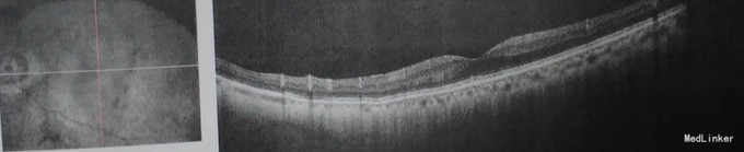 查体: VOD 0.9,VOS:0.8,双眼中央前房4CT,周边1/2CT,虹膜纹理清,瞳孔3×3mm,晶体混浊++。眼底 C/D约0.8。双眼房角开。 辅查: 右眼视盘视神经纤维层下方厚度变薄
