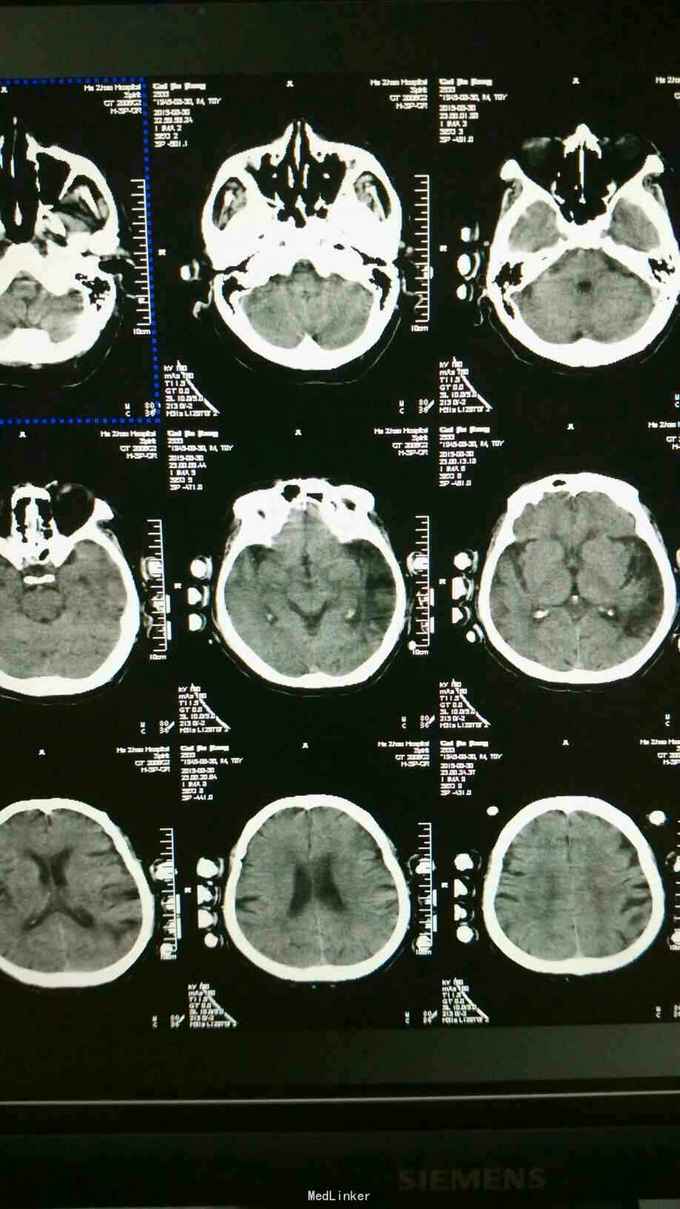 入院后查体血压高,反应迟钝,给予脑ct检查,左侧颞叶陈旧性脑梗死,右侧脑室旁腔隙性脑梗死,遂按脑梗死治疗,输液两天后晚上患者突然感觉病情加重,立即给于脑ct检查,跟入院无差别。检查结束后患者突然出现抽搐,全身强直,五分钟后好转,全身大汗。