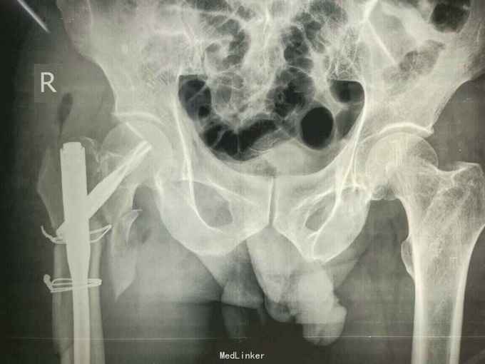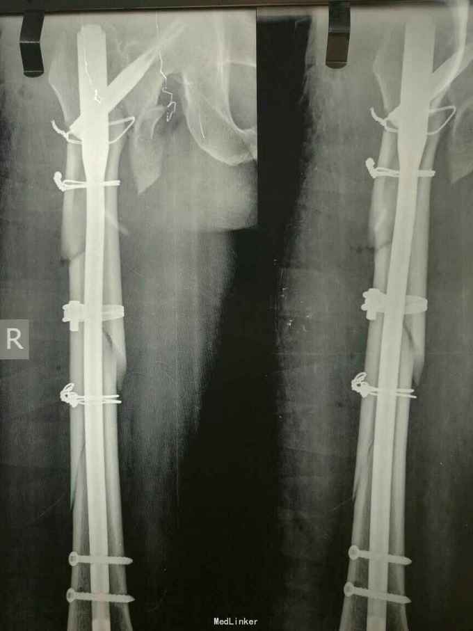诊断:右股骨转子间骨折 右股骨干骨折 治疗:切开复位髓内钉固定术