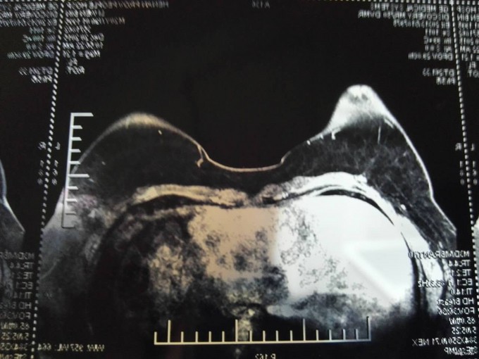 双乳基本对称,乳房呈“女性化”发育,乳头在同一水平线上。阴茎短小,未发育,无体毛。行MRI示:双乳腺体异常发育。性激素提示:睾酮 0.19ng/ml(正常成年男性 1.75-7.81ng/ml)。