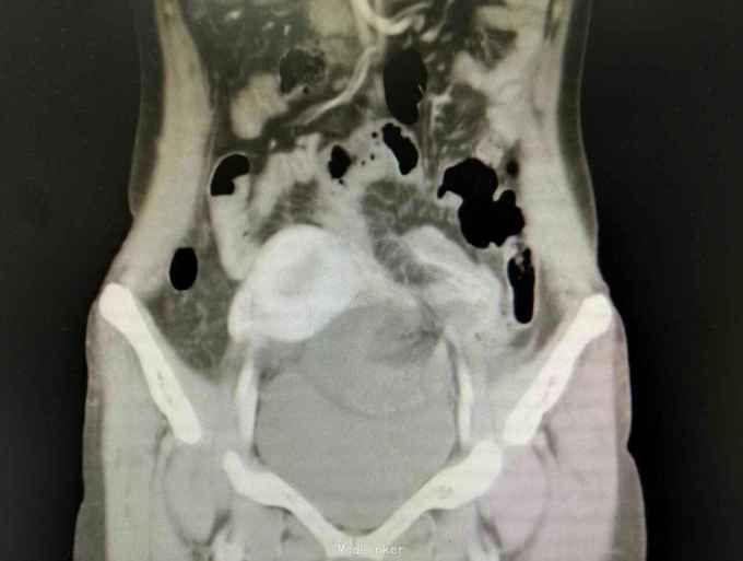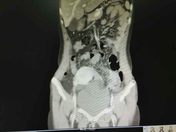 患者腹痛入院,各项生命体征平稳,无腹膜炎体征,抽血也没较大的异常,常规来说并不需要特殊处理,所幸的是完善了CT,及时发现了腹痛原因,因黏连形成的腔隙与腹腔隔离,所以患者腹痛不明显,即使肠坏死一般情况也无特殊,患者发病时间短,CT检查及时,避免了延误治疗导致肠坏死加剧。从中我们可以吸取教训,对于急腹症腹痛不典型的患者,不能用某种炎症解释病情的话,如果既往有手术病史,一定要注意内疝可能,对当前的医疗环境来说,急诊CT可以帮助明确诊断