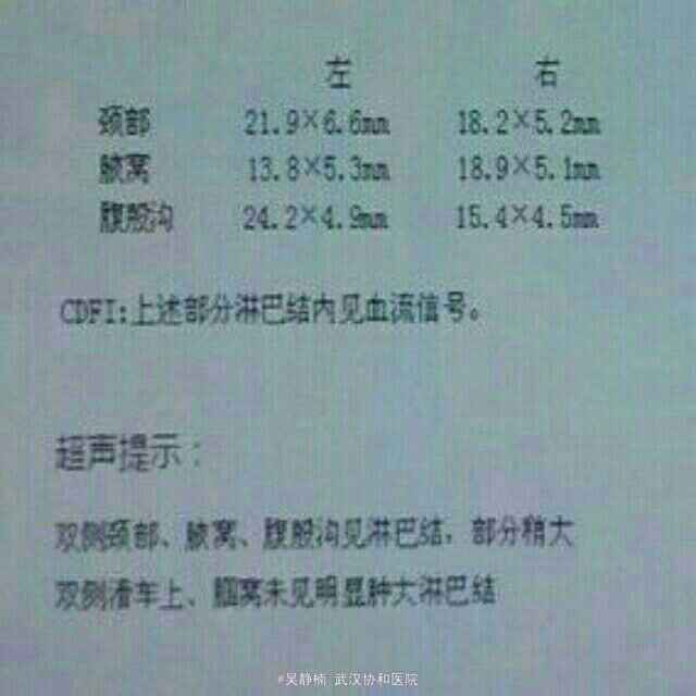 患者目前化疗中,处于粒缺,预计粒缺大于7天。监测血象,预防感染。 讨论: 嗜血细胞综合征:患者发热伴血常规三系减少,生化结果示尿甘油三脂、尿酸升高,铁蛋白明显升高, 可在骨髓、脾脏或淋巴结活检中发现噬血现象。 需鉴别原发性和继发性。 前者为常染色体隐性遗传或X连锁遗传,存在明确基因缺陷或家族史。后者可由感染(主要为EB病毒感染)、恶性肿瘤、自身免疫性疾病、药物、获得性免疫缺陷(如移植)等多种因素引起。 严重感染、淋巴瘤等级别可引起继发性嗜血细胞综合征。该患者开始考虑淋巴瘤、EB病毒相关淋系增殖疾病可能大,并按ALL予地塞米松10mg静滴, 皮肤粘膜瘀斑瘀点一度较前好转 。 目前缺乏特异性诊断方法。现广泛使用国际组织细胞协会制定的2004年诊断标准,满足以下2条之一便可建立HLH诊断: 1.符合HLH的分子诊断:PRF1、UNC13D、Munc18-2、Rab27a、STX11、SH2D1A或BIRC4等基因突变; 2.满足以下8条中的5条诊断标准①发热;②脾大;③血细胞减少(影响2或3系外周血细胞):血红蛋白<90g/L(新生儿:血红蛋白<100g/L),血小板<100×10/L,中性粒细胞<1.0×10/L;④高三酰甘油血症和(或)低纤维蛋白原血症:空腹甘油三酯≥3.0mmol/L(≥2.65g/L),纤维蛋白原≤1.5g/L;⑤骨髓、脾或淋巴结中发现噬血细胞现象而非恶变证据;⑥NK细胞活性减低或缺乏(根据当地实验室指标);⑦铁蛋白≥500μg/L;⑧可溶性CD25(sIL-2R)≥2400U/mL。