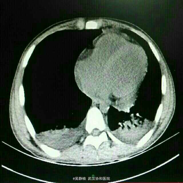 PE:重度贫血面容,全身皮肤粘膜散在出血点、紫癜和瘀斑,躯干部最为明显。浅表淋巴结肿大。全腹轻压痛,脾脏肋下3指。余无异常。 辅检: 当地医院:血常规:WBC 0.56,Hb 42,PLT 10,生化:尿酸451.3,LDH 559,甘油三酯2.1,铁蛋白>1500,CRP 118.59,APTT 59.3;彩超示浅表淋巴结肿大,肝脾肿大,头颅MRI提示右侧额顶部脑膜瘤。 入院后复查: 骨髓细胞学及免疫学分型回报考虑急性髓系白血病,腰穿未见异常,血常规:Hb 78,RBC 2.47,PLT 149,WBC 1.42,NE 0.33,LY 1.08。彩超示浅表淋巴结肿大,肝脾大,轻度二尖瓣关闭不全、少许心包积液。肺CT示左肺下叶感染灶,双侧胸腔积液。肠系膜CTA未见异常。