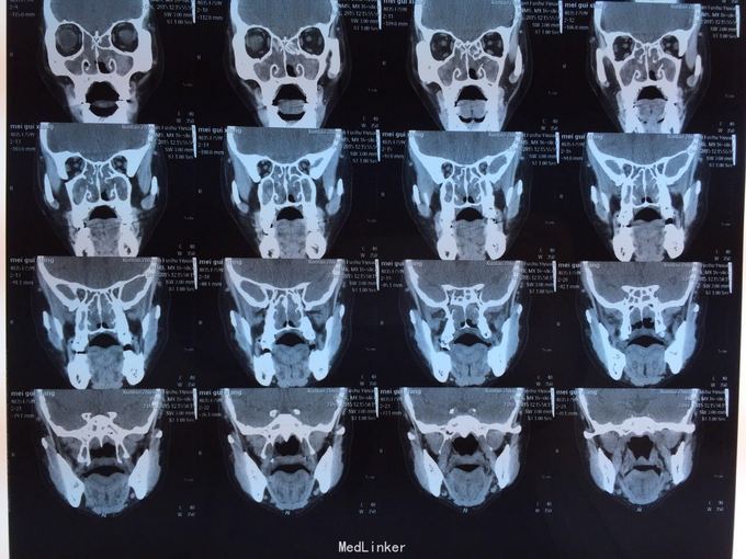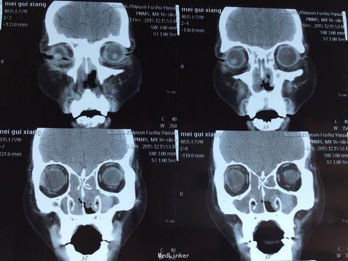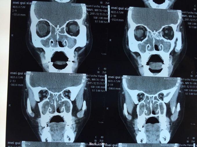 患者鼻塞分泌物增多,一年余,自诉曾于03年及09年两次鼻息肉摘除手术,现查鼻内镜双侧鼻腔可见大量息肉样物,鼻窦ct示全组鼻窦炎,鼻腔息肉。患者拟住院行第三次鼻息肉手术。