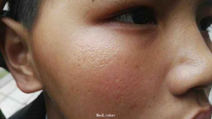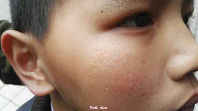 各位医师看下,面颊部刚开始是一粒丘疹,瘙痒,现面颊皮肤凹陷,凹陷处有色素斑,五年的病史,现逐渐扩大。