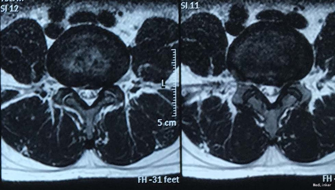 主诉:腰痛伴左下肢麻木疼痛1月余,加重5天。 患者1月前无明显诱因出现腰部疼痛,伴左臀疼痛及左小腿麻木感,行走时疼痛加重,伴活动困难,卧床休息后可缓解,无发热等症状。近5天来上述症状进行性加重,现为进一步诊治收入我科。患者起病以来,无发热,无咳嗽咳痰,无胸闷气促,无腹胀腹痛,无尿频尿急。精神胃纳可,睡眠可,大小便正常。