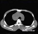 体检:体温37蘭80次,呼吸24次,血压120/80mmHg(1mmHg=0.133kPa)0精神疲惫,消瘦。全身浅表淋巴结未及肿大,心肺腹无明显异常。 皮肤科情况:双侧颊黏膜、上颚黏膜、舌边缘见多处溃瘍面;唇黏膜见片状糜烂面、渗出、黄色或黑褐色痂皮和嘴角浸溃发白,张口困难;鼻孔黏膜交界处、眼睑缘和阴茎冠状沟见浆痂和脱痂后的淡红斑;干、四肢见散在红斑和水疱,大疱疱壁紧贴皮肤、部分破裂,基底潮红,类似多形红斑样改变,部分疱液浑浊,见白色药痂黏着或黑色痂皮,尼氏征阴性;10指(趾)甲周见皱缩的水肿性暗红斑。 X线胸片:右上纵隔肿块5cmx6cmx7cm。 胸部CT:右前上纵隔内见一团状软组织肿块影,边界清楚,大小7.2cmx5.9cmx9.6cm,考虑:右前纵隔内肿块,巨淋巴结增生可能,心包少许积液;双肺散在少许炎症,双肺上叶多发性肺大泡。 背部水疱组织病理检査:轻度角化过度,部分基底细胞层上水疱,部分为棘层内水疱,水疱内见棘刺松解细胞,真皮浅层及血管周围散在淋巴细胞和嗜酸性粒细胞浸润;直接免疫荧光:棘细胞间IgG(±)、C3(++),基底膜带IgG(+),IgA和IgM均为阴性。符合天疱疮组织病理改变。