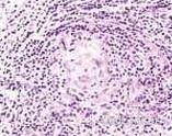 给予丙种球蛋白5g静脉注射每日1次,用5d,泼尼松25mg/d,于同年9月12日在胸外科行右上前纵隔肿物切除术,并清除颈部淋巴结20个。 纵隔肿物病理检查:包膜完整,表面灰红,质地细腻。肿瘤组织中可见结节状成分和弥漫生长成分:结节状成分为生发中心萎缩伴透明变的淋巴滤泡,周边套区小淋巴细胞增生,围绕生发中心呈同心圆样排列,可见毛细血管穿透套区并长人生发中心(图7);弥漫生长区由梭形至卵圆形细胞构成,排列呈束状、席纹状,瘤细胞核卵圆形或长梭形,核仁小,核膜薄,瘤细胞异形性不明显,梭形细胞间见均匀粉染沉积,间质淋巴细胞、浆细胞及组织细胞反应明显,局部见多核巨细胞。 免疫组化结果:CD3、CD5、CD7、CD20、PaX-5、CD21、CD23均阳性,CDl5、CD30、TdT、SMA、CD35均阴性;散在浆细胞CD38、CD138阳性,血管CD34阳性;符合Castleman病(透明血管型)伴滤泡树突细胞增生及间质硬化。 另见淋巴结20个,呈反应性增生改变。最后确诊为Castleman病(透明血管型)、副肿瘤性天疱疮、SLE。 术后继续予泼尼松25mg每日1次,4周后皮肤糜烂面大部分消退,腋下和胸壁仍有水疱和糜烂面,唇黏膜和口腔内仍有糜烂和疼痛,影响进食,加服硫唑嘌呤50mg每日2次,治疗4周后皮疹和黏膜糜烂基本消失