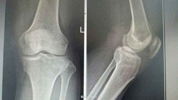 外伤致膝关节肿痛活动受限3小时