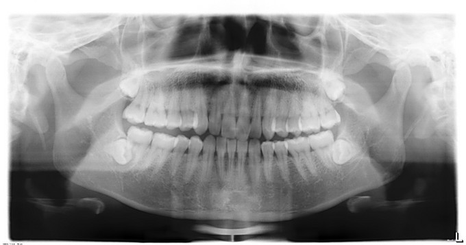 发现上下颌阻生牙1周,者于1周前无明显诱因出现右下后牙疼痛,冠周冲洗后疼痛症状缓解,外院全景片示:18、28、38、48阻生齿。今为进一步治疗来我院就诊,门诊以"18、28、38、48阻生齿"收入院。