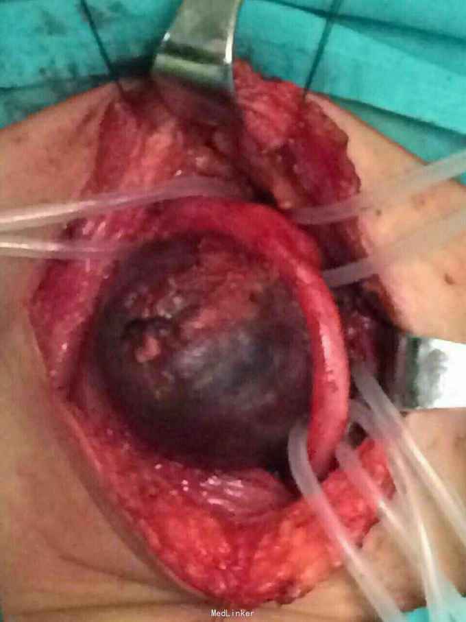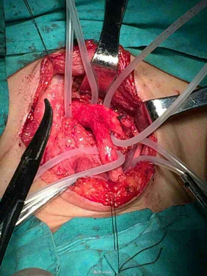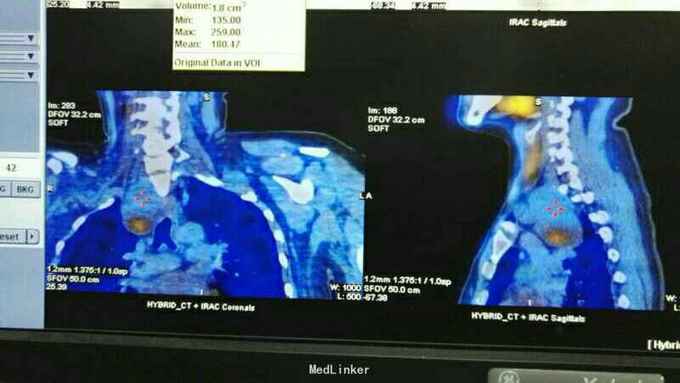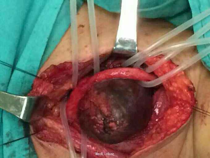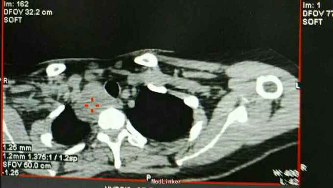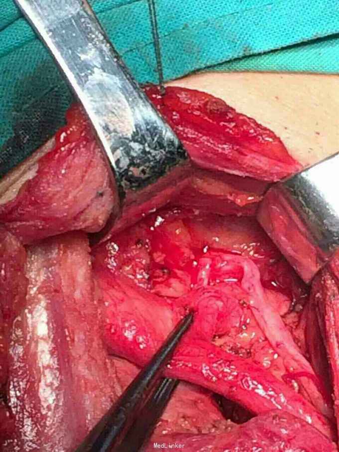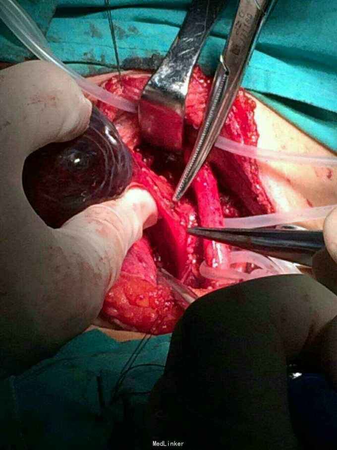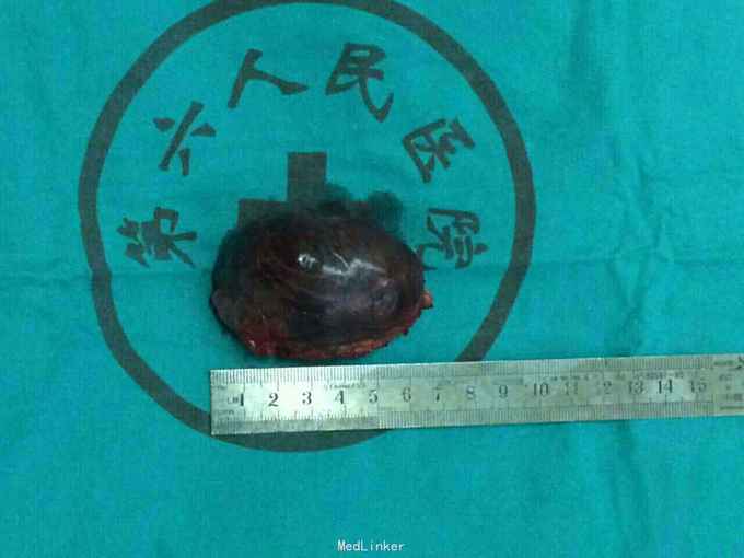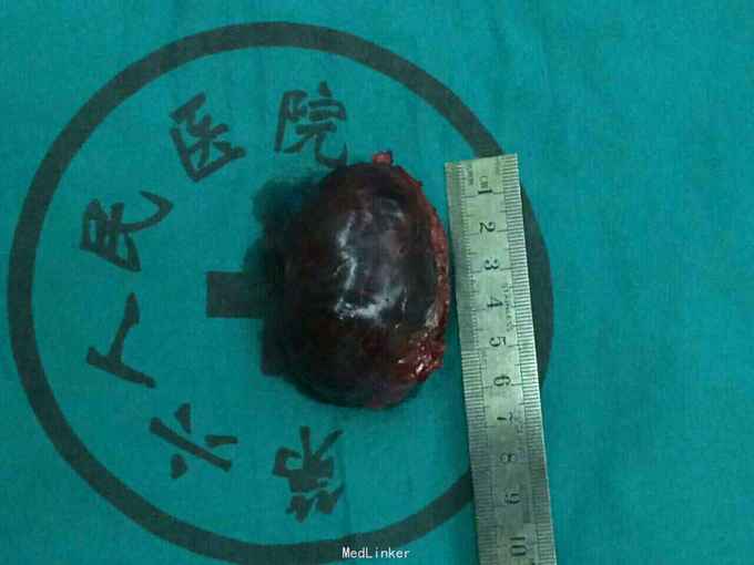 高钙危象,血钙4以上,右巨大甲状旁腺瘤囊性变,暴露右无名动脉,右颈动脉,右锁骨下动脉,右颈静脉,右无名静脉,右迷走,喉返起始部,胸膜顶,小心完整切除。6X5x4Cm。