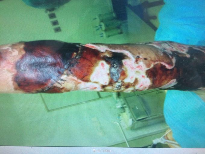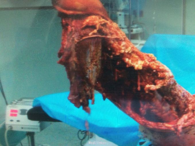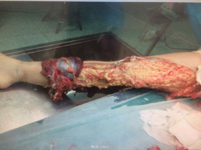 经15天的治疗和两次更换负压后是下图所示。患者伤情严重,后期还有多次手术。