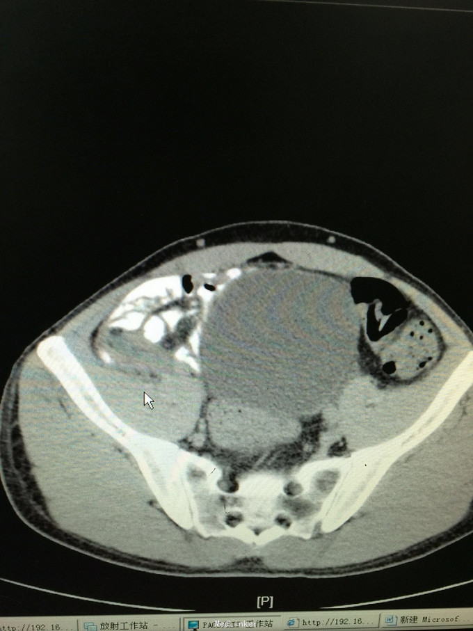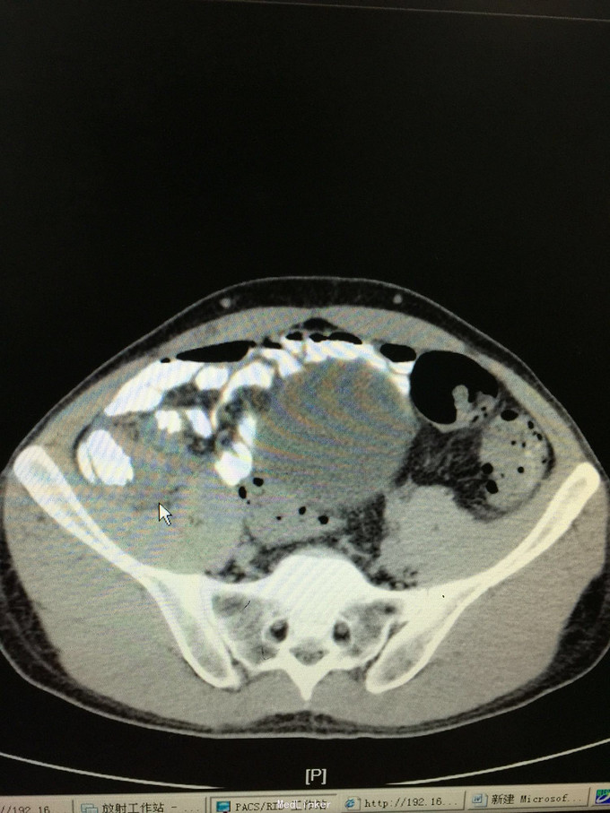 查体:各生命体征正常,心肺无异常,腹部查体:腹平坦,未见腹壁静脉曲张,腹软,未见胃肠型及蠕动波,右下腹可触及一质韧包块,大小约5✖️3cm,界限欠清,活动度一般,右下腹压痛阳性,反跳痛弱阳性,无肌紧张,以麦氏点压痛为重。 辅助检查:详见图片