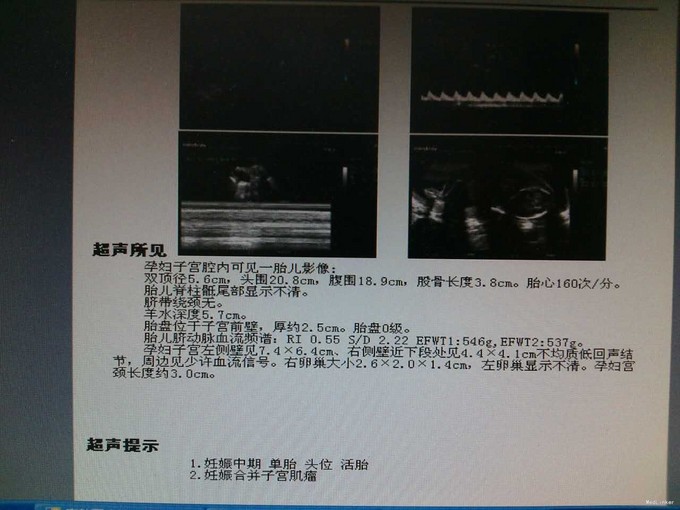 张某,女,30岁,以“停经5月余,胎动1月余,下腹痛3天”为主诉来诊。 既往:2014年发现子宫肌瘤,大小约4.8cm,孕前复查子宫肌瘤大小约5.6cm,初孕。