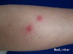 皮肤结核的临床表现多种多样,丘疹坏死性结核疹是其中较少见的一种。患者多为青年人,常在春秋季节发病,初发损害为毛囊性丘疹,后在丘疹顶端发生针头大小的脓疱,渐扩大,中心坏死,形成溃疡,遗留瘢痕或色素沉着。治疗方面,是否应用抗结核药物尚存在争议,总结日本多例丘疹坏死性结核疹患者没有治疗皮疹自然消退,但对于结核菌素试验阳性或合并其他结核性疾病的患者,给予正规足量的抗结核治疗是必要的。根据本例患者的典型临床表现、结核菌素试验强阳性以及组织病理学的改变,丘疹坏死性结核疹的诊断成立。给予抗结核治疗3个月后皮损消退,目前随访中。本病在发病早期皮疹主要为炎症性毛囊性丘疹,易被误诊为毛囊炎,值得注意。近来结核病的发病率已经出现了再度升高的趋势,皮肤结核病也应予高度警惕。对于可疑病人,要在认真分析临床表现的基础上,结合实验室和组织病理学检查,尽早做出诊断并给予及时正规的抗结核治疗。