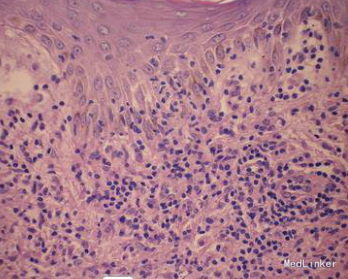 皮肤科检查:四肢、躯干散在分布红色丘疹、结节,米粒至花生米大。部分中央破溃、结痂,部分有轻微疼痛。四肢伸侧可见淡褐色瘢痕。实验室检查:血尿常规正常,胸部x线正侧位未见异常;结核菌素试验强阳性。右上肢皮损组织病理检查:表皮稍增生,真皮炎症浸润呈楔形,真皮浅中层血管周围见淋巴细胞、组织细胞为主的炎细胞浸润。