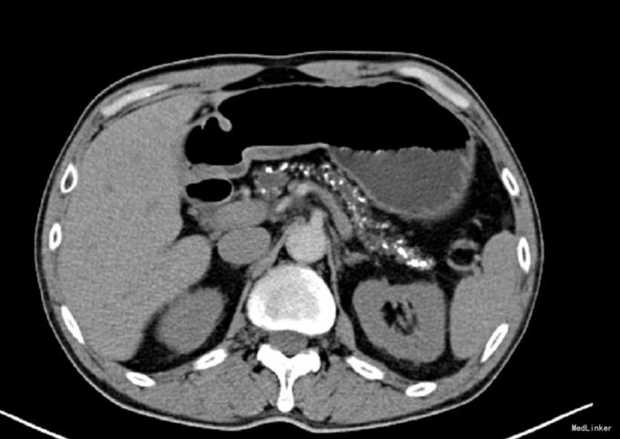 患者,男,59岁,因“ 反复上腹部疼痛4年 ”入院。患者4年前饭后出现上腹部剧痛,向后背部放射,有恶心呕吐,呕吐物为胃内容物,无腹胀腹泻,无畏寒发热。曾在当地医院治疗(具体用药不详),病情有所好转,1年前复查发现CA199升高,近几天感上腹部隐痛,检查发现CA199持续升高。