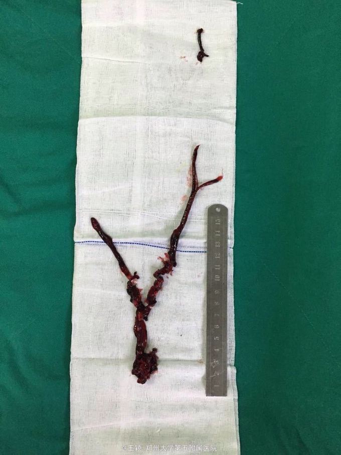 腹主动脉骑跨栓,心律不齐 房颤 急诊全麻下行双股动脉切开去栓及造影术,术后抗凝,解痉,改善循环,营养神经,抗炎,利尿及碱化尿液,监测肾功能,电解质等,随时准备透析治疗