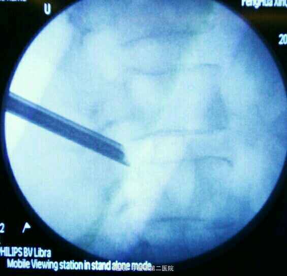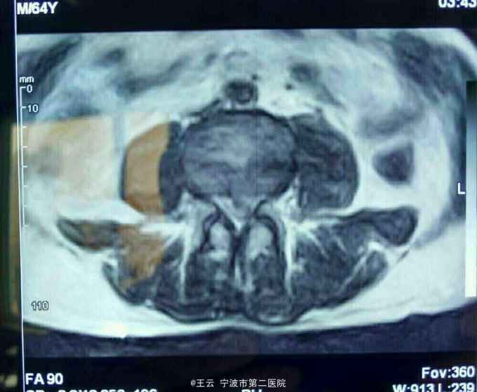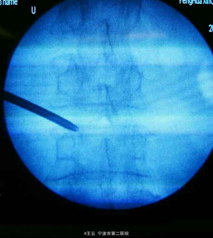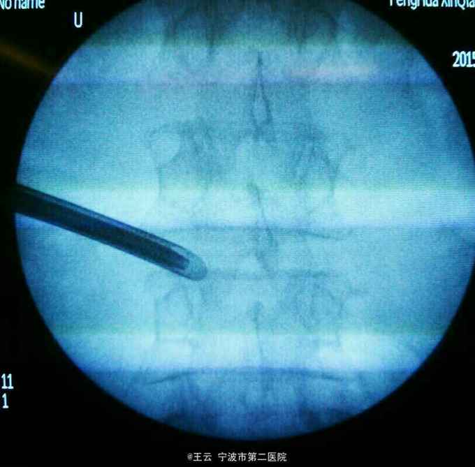 诊断:L3/4椎间盘脱出 治疗:经椎间孔入路椎间孔镜下髓核摘除,射频消融