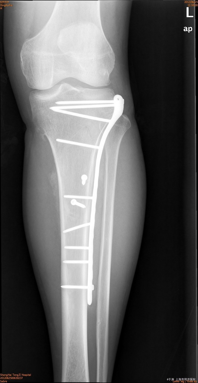 术后4月随访,复位可,骨折愈合可,力线可,内固定在位。对于胫骨近端骨折,ORIF术效果确凿。