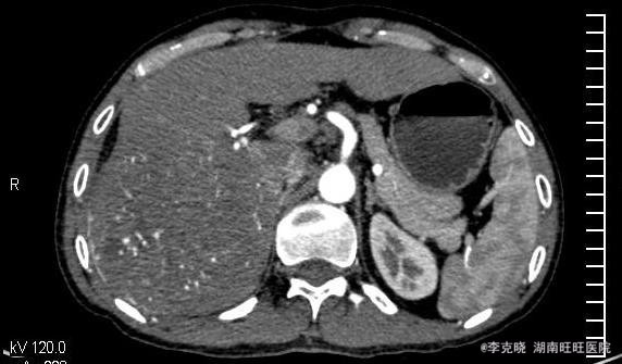 患者男,57岁,上腹部胀痛伴乏力3个月;患者3个月前开始无明显诱因感到上腹部胀痛不适,呈持续存在,无畏寒发热,无皮肤巩膜黄染,无恶心呕吐,无别处放射痛,同时伴有渐近性乏力。3个月来疼痛持续不缓解,遂来院就诊。患者既往有乙肝小三阳病史多年,未予处置及复查。