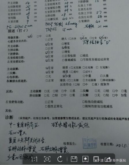 T36.3℃,HR112次/分,R35次/分,BP74/55mmHg,贫血貌,双肺呼吸音粗,双肺底可闻及湿罗音,P2>A2,颈静脉怒张,双下肢中度水肿。 CTPA未见肺栓塞,CT可见心影增大,床旁心脏超声检查提示重度肺动脉高压,免疫指标多项阳性