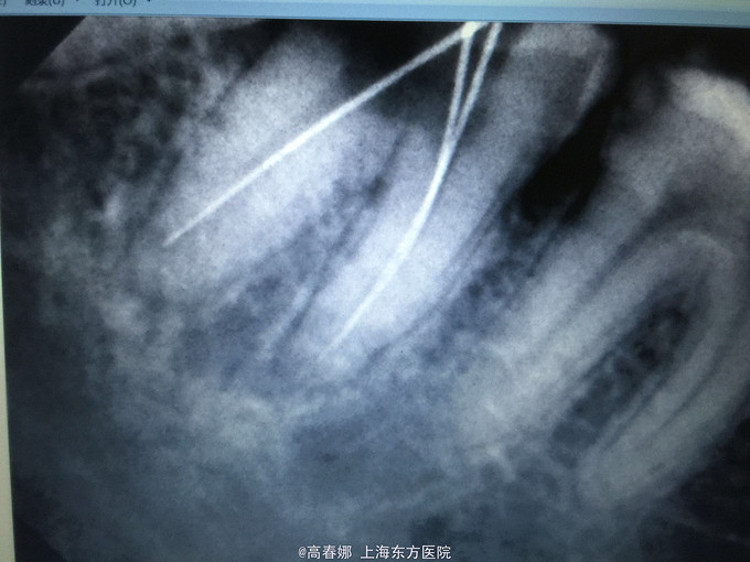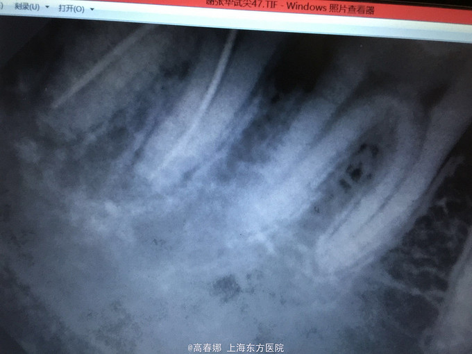 检查:47远中麟面龋坏,探诊(-),叩诊(+),松动I度,牙龈无明显红肿,牙周袋约3mm,冷诊(-)。 48近中阻生,未见明显龋坏,牙龈无红肿。 X线示:48近中阻生。47远中邻面龋坏及髓,根尖区低密度影像。
