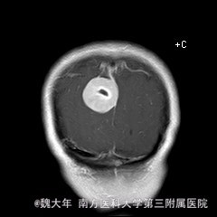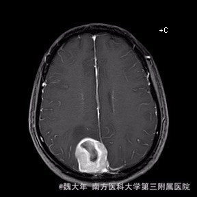 术后1周复查头颅MR未见明显肿瘤残留,拆线后出院。