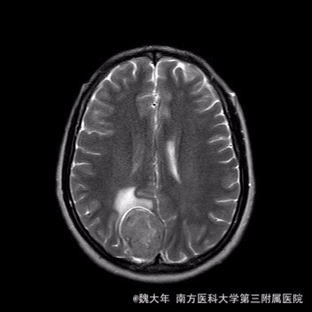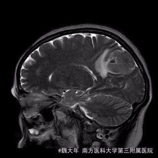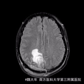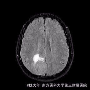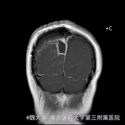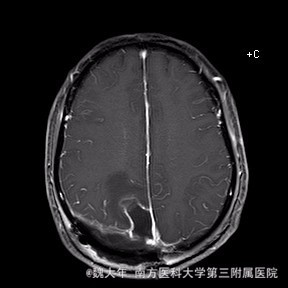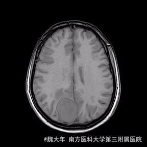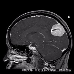 52岁,女性,因“反复头痛10余年,加重1年”入院。患者10余年前无明显诱因始出现头痛,表现为全头发作性胀痛,反复发作,无伴头晕、恶心,无呕吐、肢体抽搐,自行服药(具体不详)及休息后缓解,未予特殊处理。1年前患者觉头痛逐渐加重,以右顶部为甚,劳累或日晒后加重,无头晕、视物旋转,无恶心、呕吐,无发热、寒战,休息或平躺后症状稍有缓解,自行服药不能改善,至当地医院就诊,查颅脑MRI和CT提示“右侧顶部脑膜瘤”。