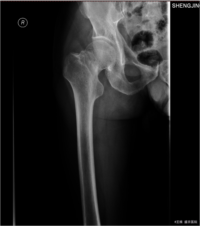 1.患者男性,67岁,以“摔伤后右髋部疼痛肿胀活动受限5小时”为主诉入院。 2.现病史:患者及家属自述于2015年12月17日在沈阳市骑车时被机动车刮碰后摔倒,后自觉右髋部疼痛肿胀活动受限,摔倒后无昏迷。遂被急送至我院急诊,急诊行骨盆CT示:右股骨颈骨折。现患者以“右股骨颈骨折”为诊断收入我科。患者病来,意识清楚,自诉无头晕头迷,恶心呕吐,无咳嗽咳痰,无心慌气短,饮食正常,二便正常,体重无变化。
