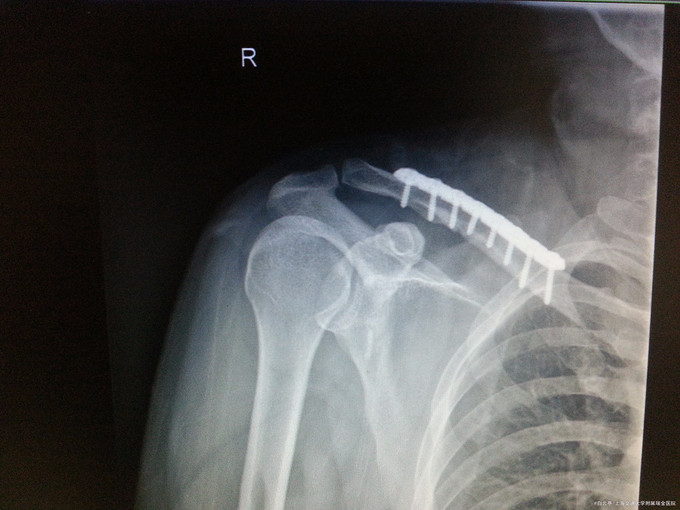 诊断:右侧锁骨骨折 处理:右锁骨骨折切开复位钢板螺丝钉内固定术