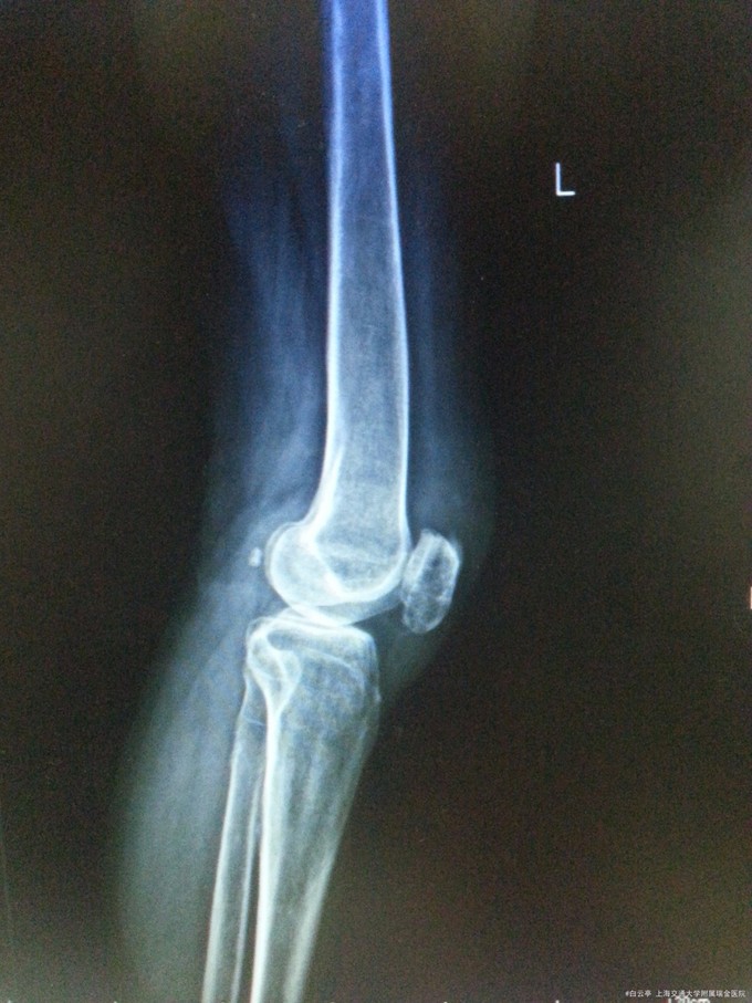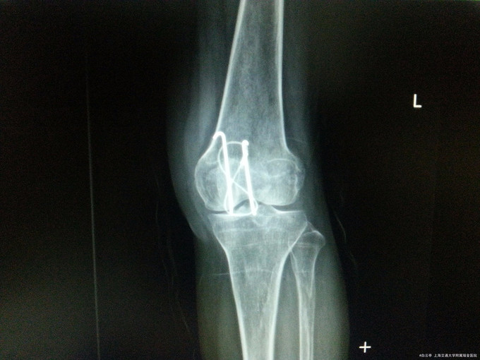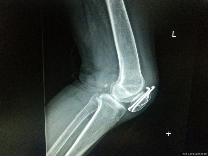 随访:术后2周患者膝关节手术切口愈合好。活动度及肌力良好 讨论:髌骨张力带术后患者,通常9个月至1年后拔除内固定装置。请讨论各位同道会选择经过多长时间