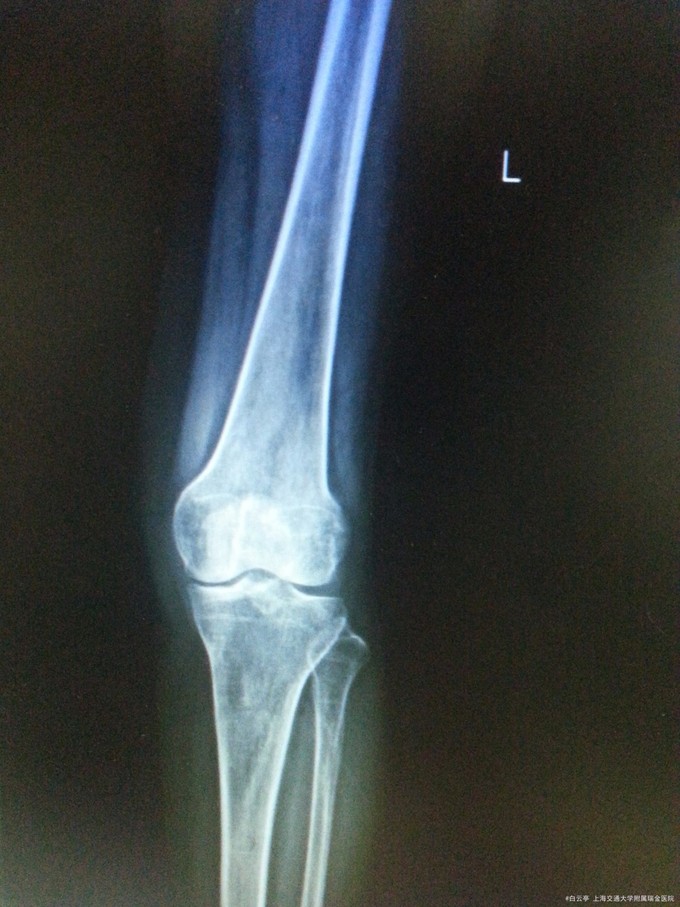 主诉:左髌骨骨折ORIF术后11个月 病史:患者,女,66y。患者11个月前因“左髌骨骨折”我院全麻下行“左髌骨骨折切开复位内固定术”。术顺,患者恢复良好予以出院。术后患者定期复查骨折愈合情况,目前患者复查左膝部平片示骨折愈合良好,患者无切口处疼痛红肿热痛、无左下肢末梢苍白、麻木等缺血表现,无畸形愈合,无肌无力等不适,现为取出内固定再次入院。