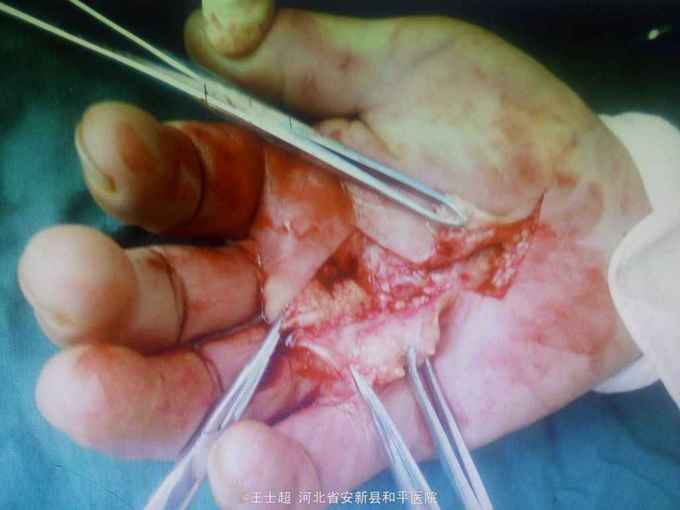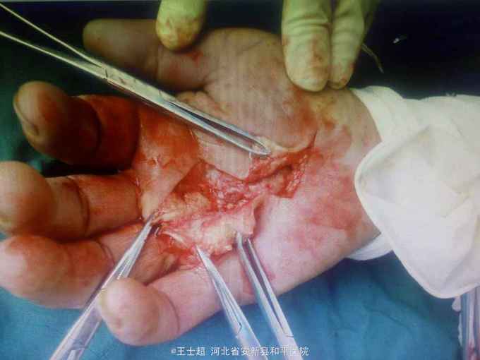 诊断,右掌腱膜挛缩症 手术切除挛缩之掌腱膜