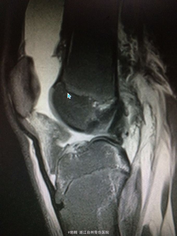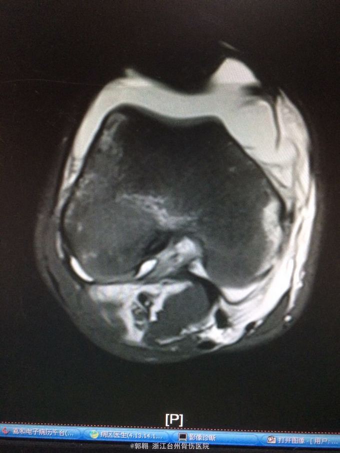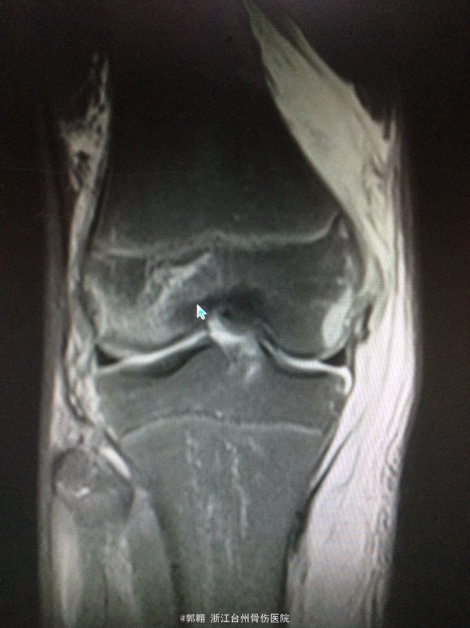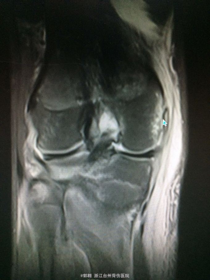 诊断:右膝关节内侧副韧带撕裂 前交叉韧带损伤 股骨内侧髁骨折胫骨平台外侧缘骨折 腓肠肌肌肉拉伤 处理:制动 支具托固定 冰敷 退肿止血药物治疗