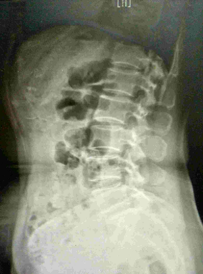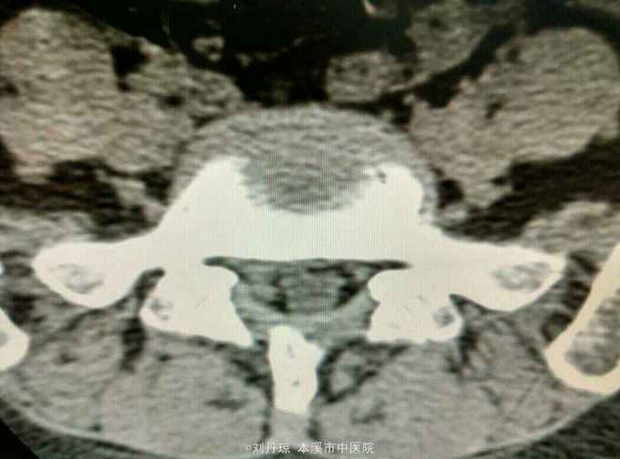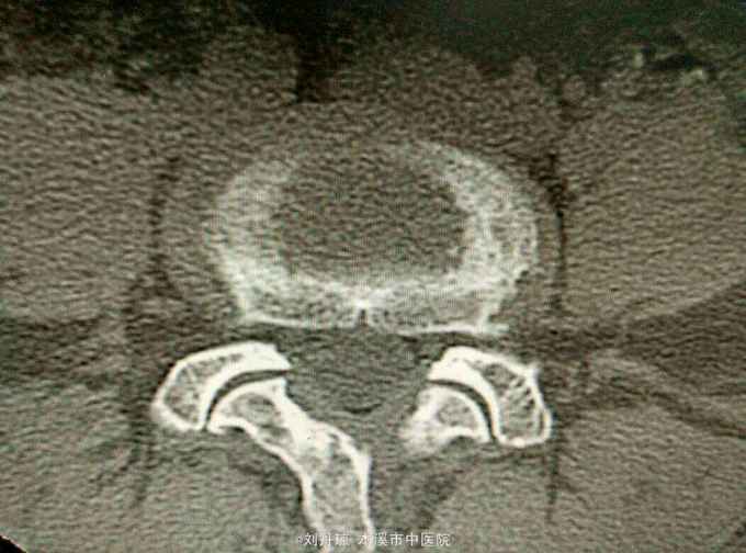 腰痛伴有右下肢放射痛三年,加重十天。患者三年前因抬重物腰部刺痛,休息一周后好转,十天前因开车劳累4.5小时后又洗澡,第2天即感右下肢放射痛难以忍受,遂由门诊收入院治疗。