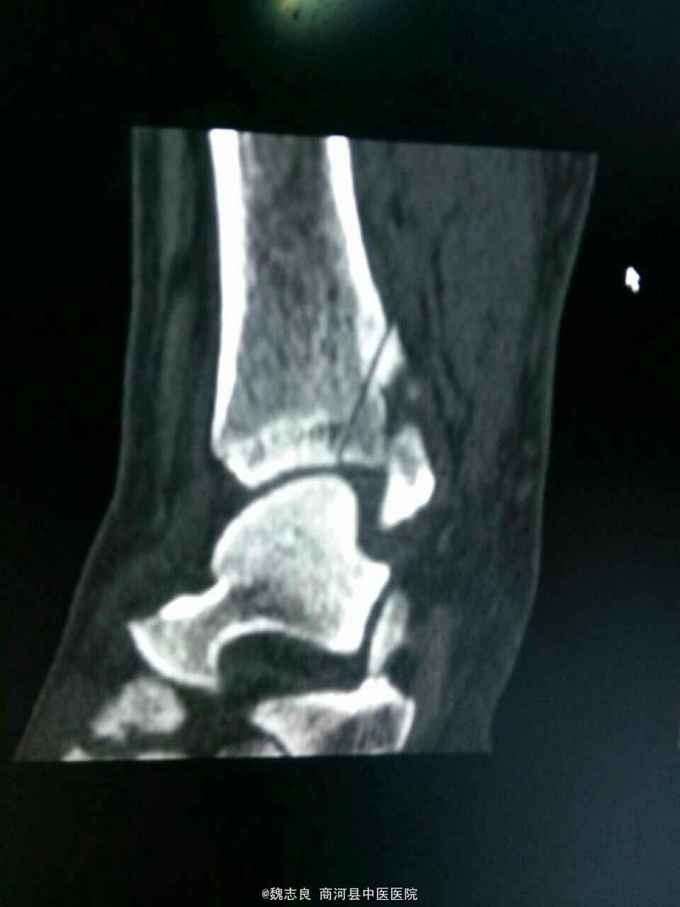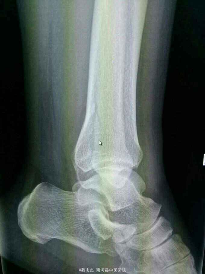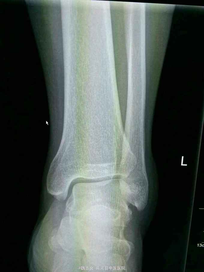 左后踝骨折。手术切开内固定。