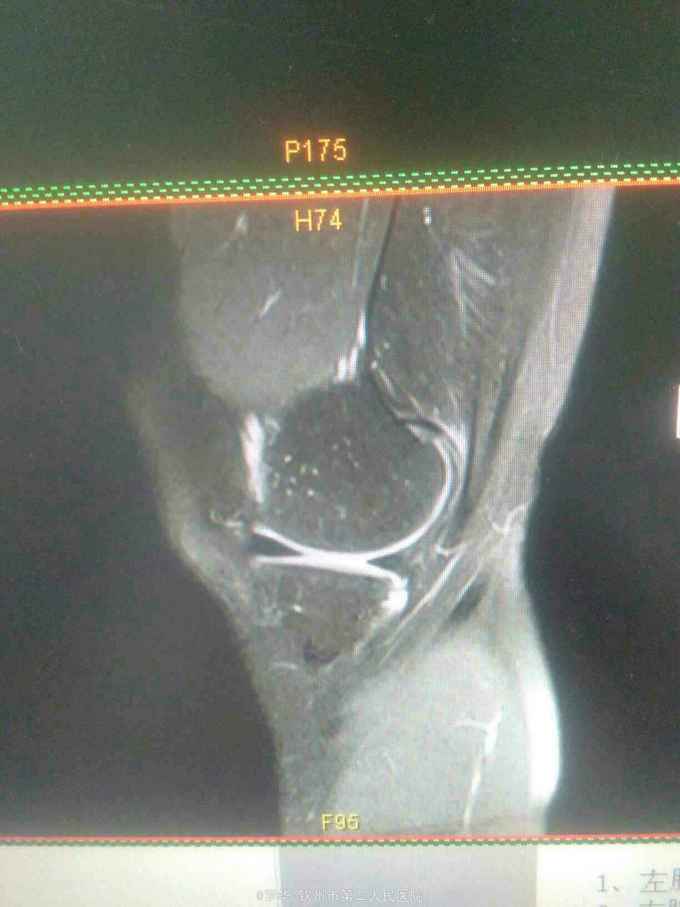 查体:左膝关节无明显压痛,前抽屉试验阳性,侧方应力试验、麦氏征、研磨试验均阴性,膝关节屈伸活动可,余查体未见特殊。 辅查:膝关节磁共振提示左前交叉韧带损伤,左膝关节半月板损伤。