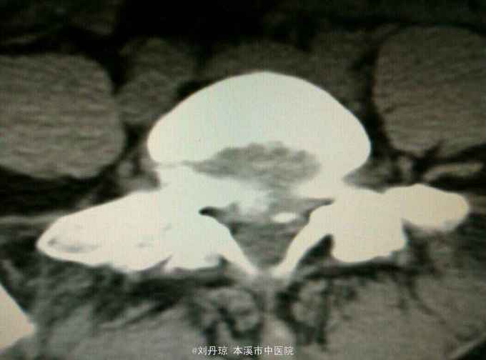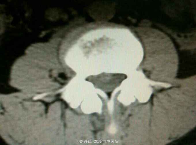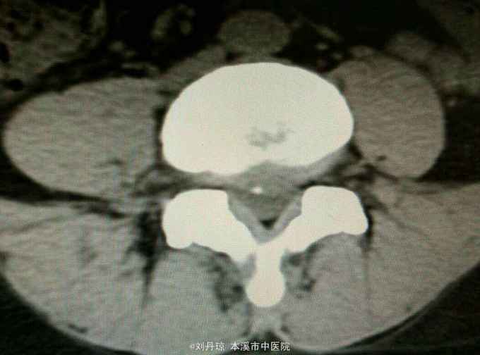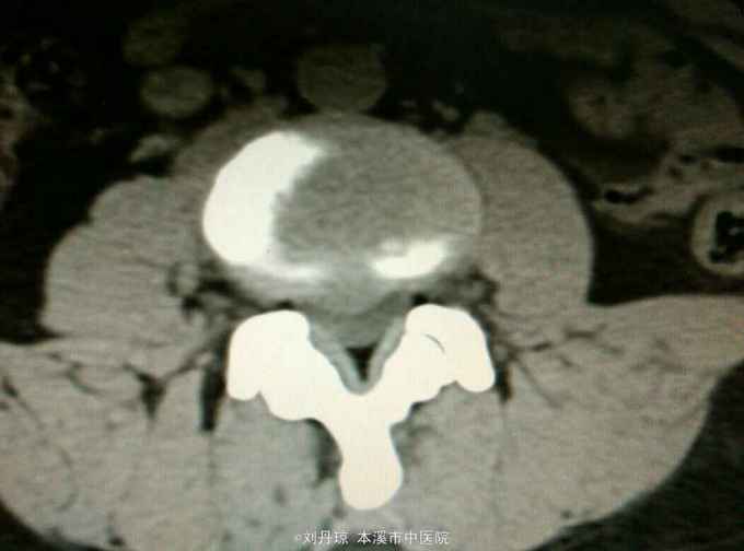 查体:L3—S1棘突右旁压痛阳性。直腿抬高实验左70度,右40度。 直腿抬高加强实验左侧阴性,右侧阳性。腰椎功能障碍。 辅查:CT: L3—S1椎间盘突出。
